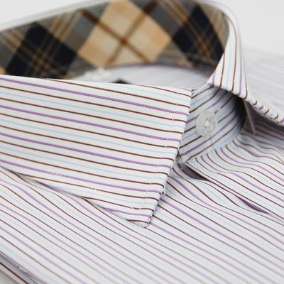 金‧安德森 經典格紋繞領白底紫黑條紋短袖襯衫 髮箍 英文