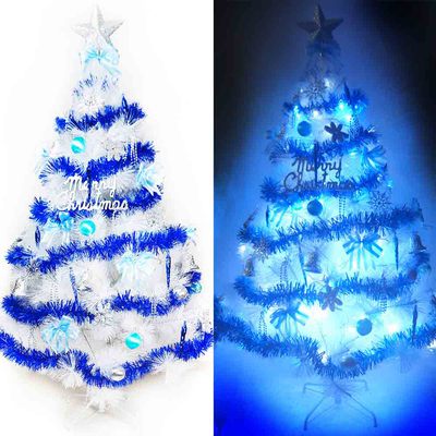 台灣製6尺(180cm)特級白色松針葉聖誕樹 (藍銀色系)+100燈LED燈2串-附跳機,時尚居家必備!