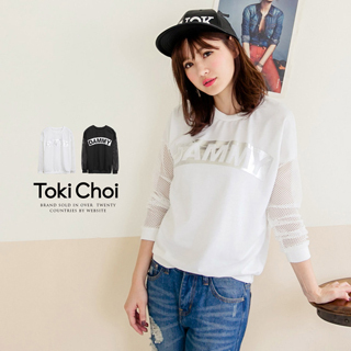 【東京著衣】燙金方框字母網布拼袖上衣(韓系)