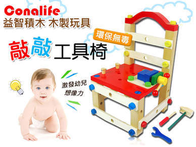 商品描述:2款任選,無毒多色烤漆製成的零件組,寶貝安心玩!【Conalife】 兒童益智親子DIY敲敲積木椅/組裝工具車