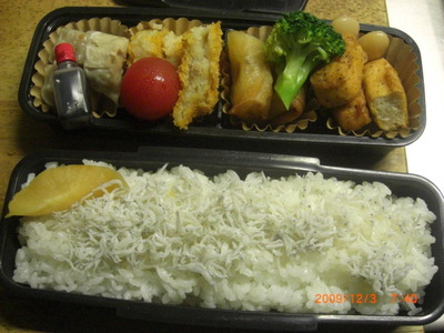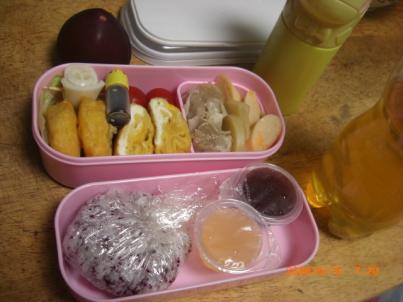 兒子的中學便當1蛋炒飯再加點番茄醬23雞肉圓子和燙波菜45兒子的便當盒摔壞了那天上學時我看他帶書包和劍道用具還...