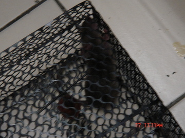 在部長回國的那天晚上,"勇闖"部長家的那隻可惡山老鼠,誤觸部長家所設的"機關",已無法脫逃,至今已"駕鶴西歸"囉! 這兩張就是牠的照片,噁~~~看了就想吐……