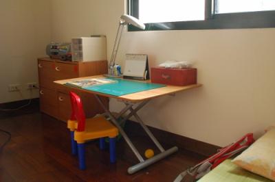 上週更換新的成長桌椅, 比原有的好用許多, 姐姐以後寫功課的地方, 慢慢的有了個樣子, 平時白天房間內的採光很好, 但是考量到以後如果在夜間作功課, 原有的照明屬性較柔和, 氣氛雖好但亮...