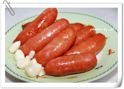 今天中午本來只有吃肉燥麵,想到冰箱上層有一盒香腸,