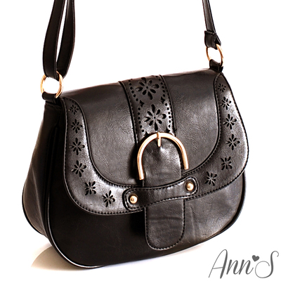 Ann'S甜美實搭.復古雕花馬鞍包*黑