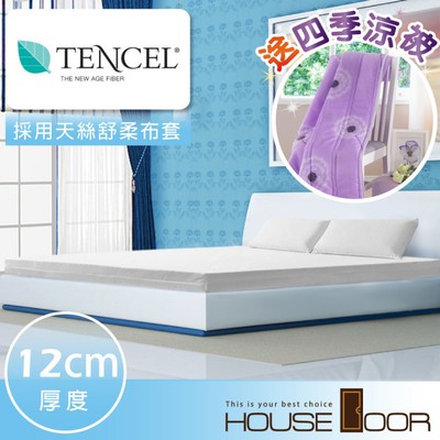 大心推薦~【House Door】頂級涼感天絲12cm竹炭波浪記憶床墊(雙人5尺)