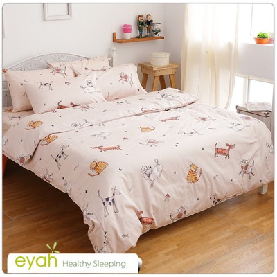【eyah】100?棉雙人加大床包枕套三件組(寵物家族)
