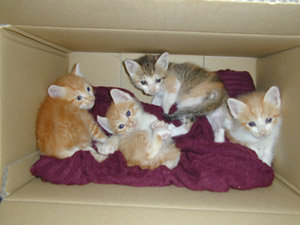 四隻粉可愛的虎斑小喵咪免費領養,三花為母的餘皆為公的約一個多月大,預計一週後開放領養,已除蚤,會用貓砂,徵求愛心領養人。