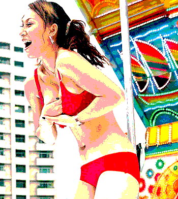 今天穿的是紅色,紅色最有誘惑力,使人心裡燃起了一盆火,感染了春天的氣息…更何況這是超短小的兩截式泳裝,當然是我...