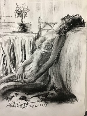 她坐在溪邊樹下的石頭上梳著長髮,衣服上還掛了些水藻,像在等待著...