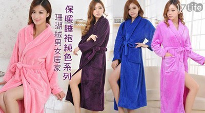 商品訊息特點平均最低只要312元起(含運)即可享有珊瑚絨男女居家保暖睡袍純色系列:1件/2件/4件,多色選擇?