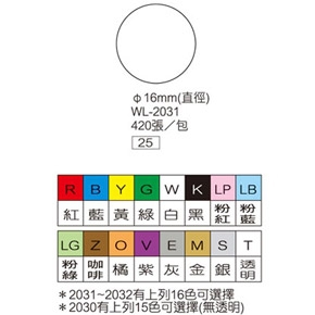 華麗WL-2031T 彩色圓形標籤 透明