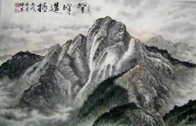 這一幅畫的是玉山,主峰的留白很精采。 雲有前後兩層,重點在後層,以其在山後,除了襯托山勢,雲本身也成了鋪寫的重心。 這樣的雲層並不常見,它從遠而近成放射狀。和山的愈遠愈飄邈成對比。這一幅表現的應該...