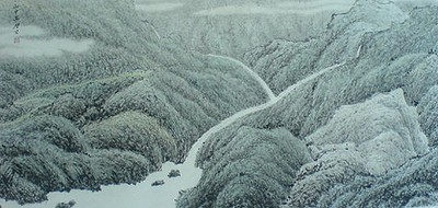 「山中無曆日」畫完蠶叢之後,接著畫此幅山中無曆日,表現的是廣袤無始的荒野,在這樣的荒野之中,人變得無比渺小,因此把點景人物畫得很不醒目。