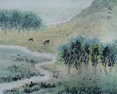 以彩墨的方式寫大自然和人的協調與互動。