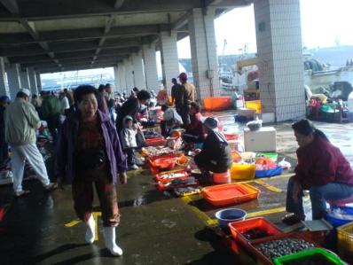 聽說在北部的淡水,婦女不准上船,說會給漁船帶來霉運。可是在這兒沒這規矩,所以你可以看到不少婦女在現場捕魚賣魚。