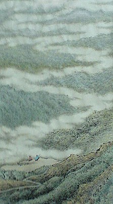 這是先前所作的坐看雲起時,看來還可愛一些。愈畫愈回去,真是新不如故。