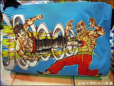 去了趟第一屆在台北舉辦的台灣文創產業博覽會,會中亦有香港文創展區,不經意看到了這個包包,如果對香港漫畫有點接觸的人,應該都會聽過老字號的漫畫《龍虎門》(也曾拍成電影,有余文樂、甄子丹等演員)。而漫畫中的主角之一—王小虎,有一項絕技便是這「電光毒龍鑽」,招式取名以現今來看雖有點令人發噱,但以形取意倒也頗符合。圖樣是早期的畫風,有濃濃的懷舊之感,讓人不自覺地想起台灣漫畫以前也曾有過烏龍院、大醉俠的時代。