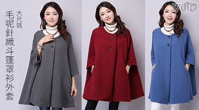 省錢達人 團購大尺碼毛呢針織斗篷罩衫外套-