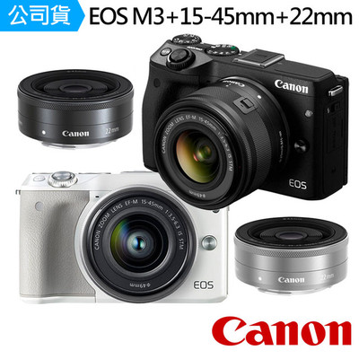 熱銷 團購【Canon】EOS M3 + EF-M 15-45mm + 22mm 雙鏡組(公司貨)