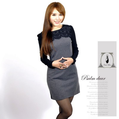 特價商品 分享【Suri Wu】優雅復古風撞色胸前蕾絲千鳥格洋裝(黑灰)