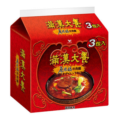 滿漢大餐自詡為中國美食的傳承者,精選食材烹調出麻而不辣、辣而不燥的精華高湯,使用牛肉原湯,讓麻辣鍋的香味和牛肉相互調和,使湯頭不油膩,口齒留香的程度,令人難忘。麻辣鍋牛肉麵[袋] 200g