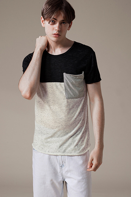 【熱門產品】Casual 涼爽混紗 方口袋拼接圓領T 03859_15432