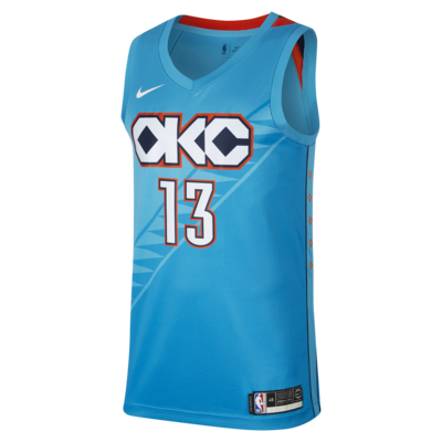 Oklahoma City Thunder City Edition Swingman Nike NBA Connected Jersey 設計靈感源自奧克拉荷馬州美國原住民部落的風俗和傳統。色彩豐富、象徵意味濃厚的設計,不僅代表球隊與社群共同擁有的求勝精神,更是向運動的力量致敬。