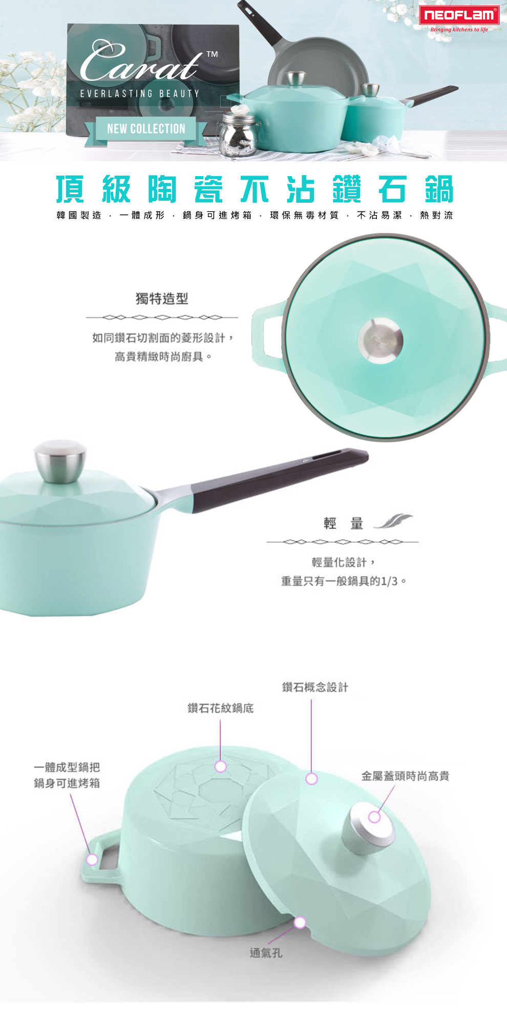 【NEOFLAM】Carat系列20cm湯鍋+陶瓷塗層蓋子(蒂芬妮藍) 討論,推薦,開箱,CP值,熱賣,團購,便宜,優惠,介紹,排行,精選,特價,周年慶,體驗,限時