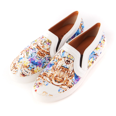 ALLEGREZZA?韓國直送寶石印花布厚底樂福鞋 白底印花界中掀起一股熱潮,