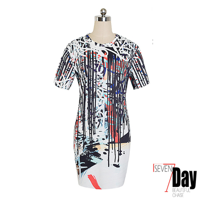 塗鴉格紋印花雪紡蓬裙(共二色) -7day