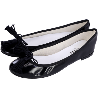 Repetto 黑色亮皮流蘇蝴蝶結飾芭蕾舞鞋