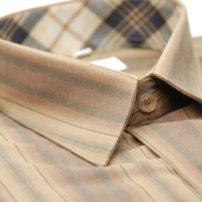 【金?安德森】經典格紋繞領咖啡條紋窄版長袖襯衫