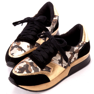 AIR SPACE★時髦韓妞~嚴選爆裂紋迷彩運動休閒厚底鞋-金