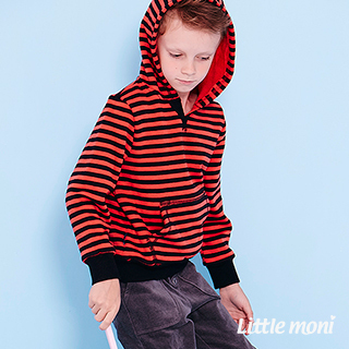 Little moni 帥氣條紋連帽T-磚紅