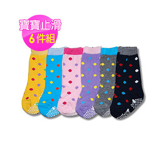 【寶寶長統止滑襪系列】寶寶長統止滑襪-彩色小圓點 款6件組(共6色)