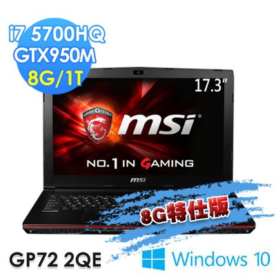 【msi微星】GP72 2QE-066TW17.3吋 i7-5700HQ GTX950(8G特仕版)