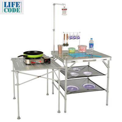 【 【LIFECODE】多功能鋁合金料理桌(有湯杓架+燈架+鋁桌+置物網) 】