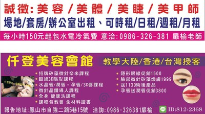 3樓分租美甲/美睫/技術教學/徵早晚美容師/場地分租/徵美容 業務/有開店意洽免費網站