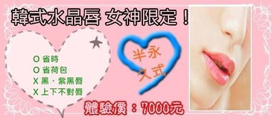 做乳暈潤唇/飄唇/水晶唇/做臉部無針/活膚藻針/孕唇/ 洗療/健康洗/繡眼線/晶鑽駐齡生技/5折優惠再扣1仟折扣