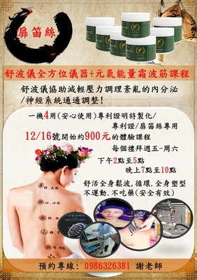 感謝大家,每週5.6下午2點開始體驗全身舒波儀元氣調身體 上課體驗填表單: