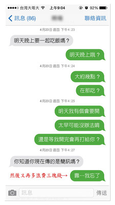 前幾天我一個朋友傳了手機簡訊給我...這個故事告訴我們,能用line傳就用line,不要亂用簡訊,會不小心害對方破財... 好了,接著和靠友分享人人有腰靠No. 381~390 預備備~靠~ ...