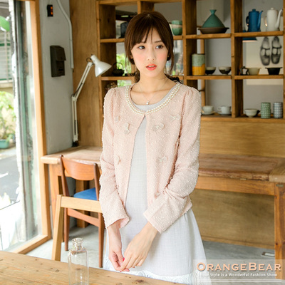 [分享推薦]1216新品 優雅閃耀~質感面料亮面蝴蝶結珍珠裝飾開襟外套.2色