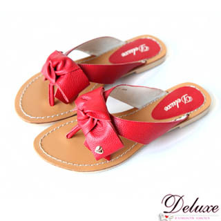 服務這麼優,當然在網路購物最好啦~~你一定要來看看【Deluxe】翩翩蝴蝶.舒適柔軟綿羊皮夾腳涼鞋(★紅)~~
