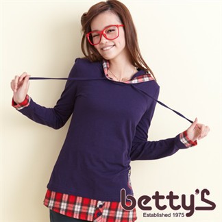 7net購物網【betty’s貝蒂思】活力學院‧徽章印花格紋拉繩連帽上衣(藍紫色)rw
