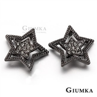 7net購物網【GIUMKA】鏤空五角星精鍍黑金鋯石貼耳針式耳環(灰鋯)_1