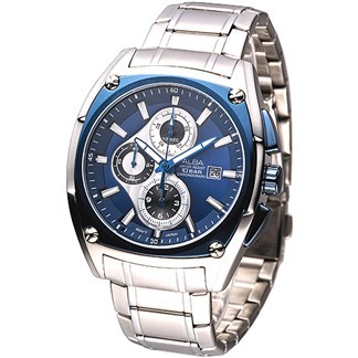 ALBA 動感新視界三眼計時男錶-藍/藍框