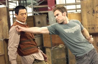 同樣的角度,我們來看看周潤發!在本片中,我們甚少看到發哥慧黠的笑容,而是緊張的五官收斂;老是在「東方雙槍俠和白老外一起bon bon bon」的槍林彈雨搶救弱勢;殺氣十足的殺手本色早被電腦停格搞得英雄不在!從小看發哥電影長大的影迷們,一方面欣慰發哥在美國的成就,一方面卻極其感歎發哥等華人英雄已淪為Hollywood化,而益發懷念他刁著牙籤,拔雙槍殺人時的快狠準;懷念他一跛一跛,打破牙齒和血吞也要幹到底的英雄氣概!可惜的是,我們在防彈武僧中看到發哥帶著老外一起擺黃飛鴻的pose,真讓人以為來到了「全民亂演」的節目現場,怎不叫人覺得無奈與矯情?