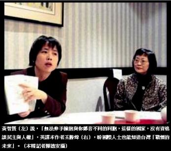 黃智賢(左)說,「無法伸手擁抱與你鄉音不同的同胞,這樣的國家,沒有資格談民主與人權」,英譯本作者王勝煒(右),盼國際人士也能知道台灣「戰慄的未來」。(世界新聞報記者陳德安攝) 這個國家,以改...