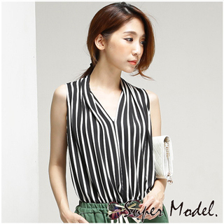 [必看]【名模衣櫃中大尺碼】涼感無袖上衣-黑白直條(可選M-XXL)價格推薦!
